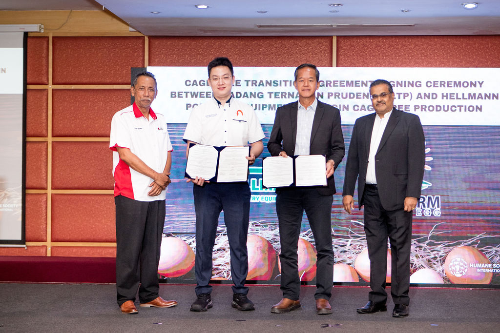 A commitment to cage-free initiative with this landmark event, Ladang Ternakan Prudence (LTP) and Hellmann Poultry Equipment signed a Cage-Free Transition Agreement, taking the major step towards fostering cage-free egg production in Malaysia. This historic agreement was witnessed by Dr. Saravanakumar S. Pillai, Senior Adviser for Farm Animal Welfare, Policy, and Engagement at Humane Society International. Dr. Pillai is also a leading figure in farm animal welfare and protection and serves as an adviser to the newly launched Malaysia Cage-Free Egg Producer’s Organisation.